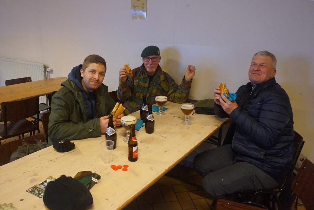 En reprenant le bon circuit et dans la bonne direction, je rattrape un groupe arrêté sur le bas-côté. C’est l’heure de la pause. Le Commando du groupe me propose gentiment une petite goutte.