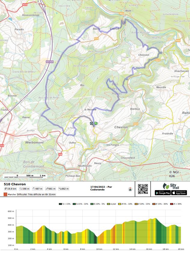 Petit coup d’œil sur la carte. Cela ne va pas être du gâteau. C’est bien vallonné, mais avec pas mal de bois.