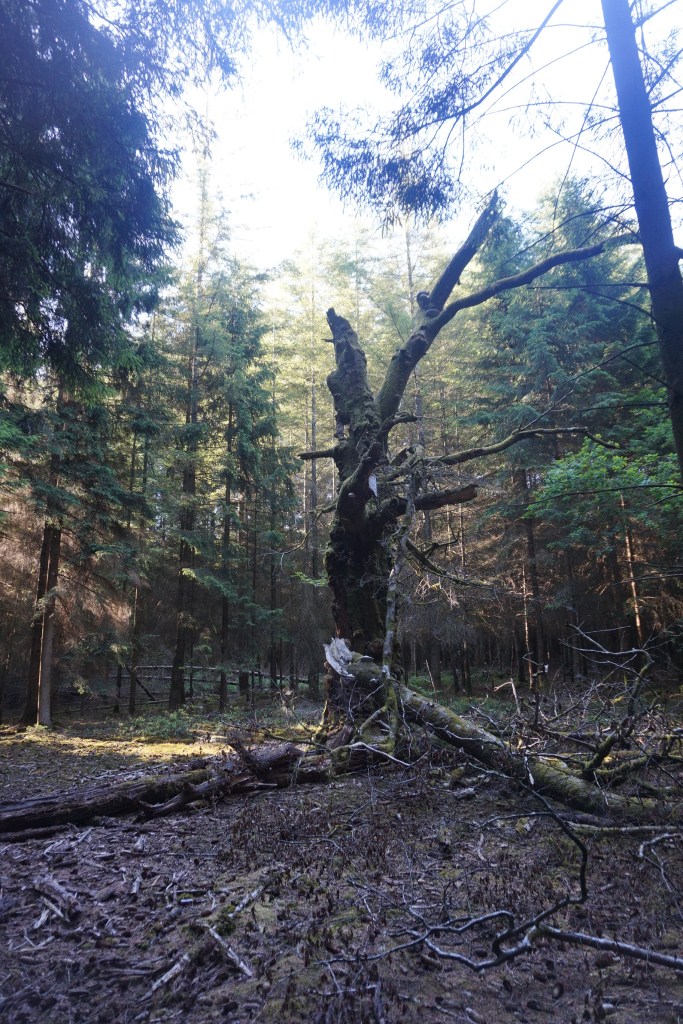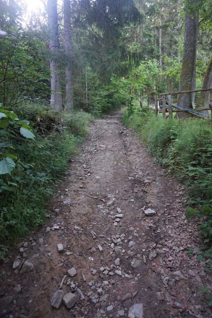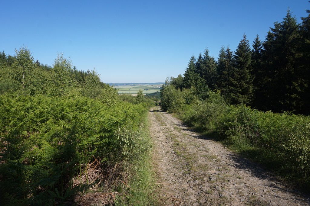 Souci supplémentaire, à un carrefour de chemins, un panneau d’interdiction de passage m’indique que je sors d’un bois privé. De plus, un bruit de tronçonneuse et de chute d’arbres m’indique que je m’approche d’un site d’abattage d’épicéas.