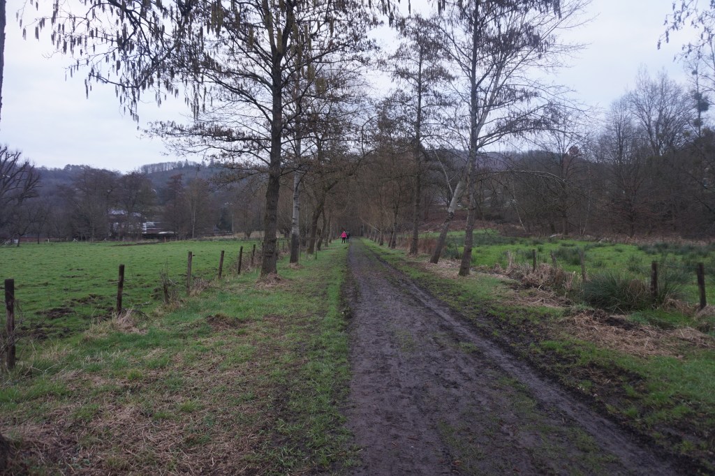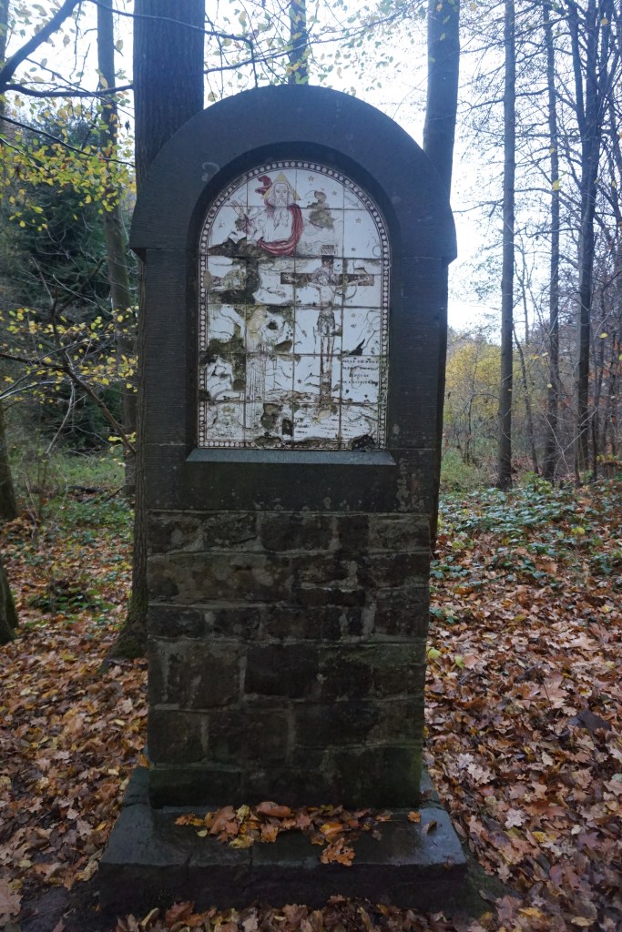 Nous redescendons ensuite vers le Rau de Pierrelairi que nous traversons sur un gué plutôt boueux, mais rien de bien méchant. Nous remontons vers Banneux par le Chemin du Rosaire.