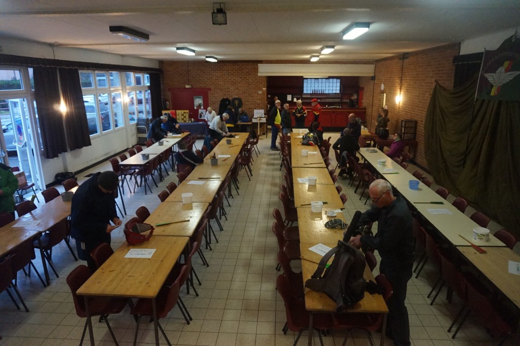 Petit passage par la salle (c’était pas prévu, mais tant pis) pour demander confirmation à Guy, président de l’APC Liège, que le parcours était complet dans les deux cas (12 + 8 ou 8 + 12) et surtout pour déguster la « bière locale ». Une excellente « Parachutist »… importée pour l’occasion de Schaffen.