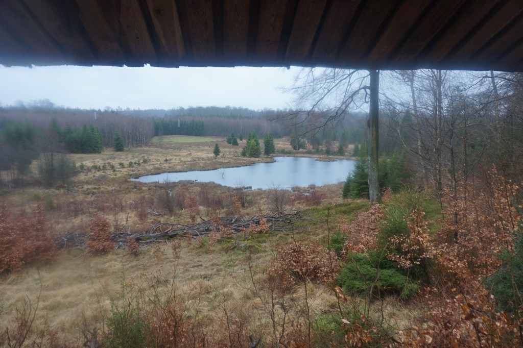 Et le chemin passe par un autre endroit typique de l’Ardenne d’autrefois : la Fagne du Rouge Poncé, une des plus anciennes réserves naturelles domaniales de Wallonie. Elle abrite une partie de ce qui reste de landes humides et tourbeuses, asséchées pour la culture importée de conifères bien plus productifs (donc rentables) que nos belles espèces d’arbres ardennais !