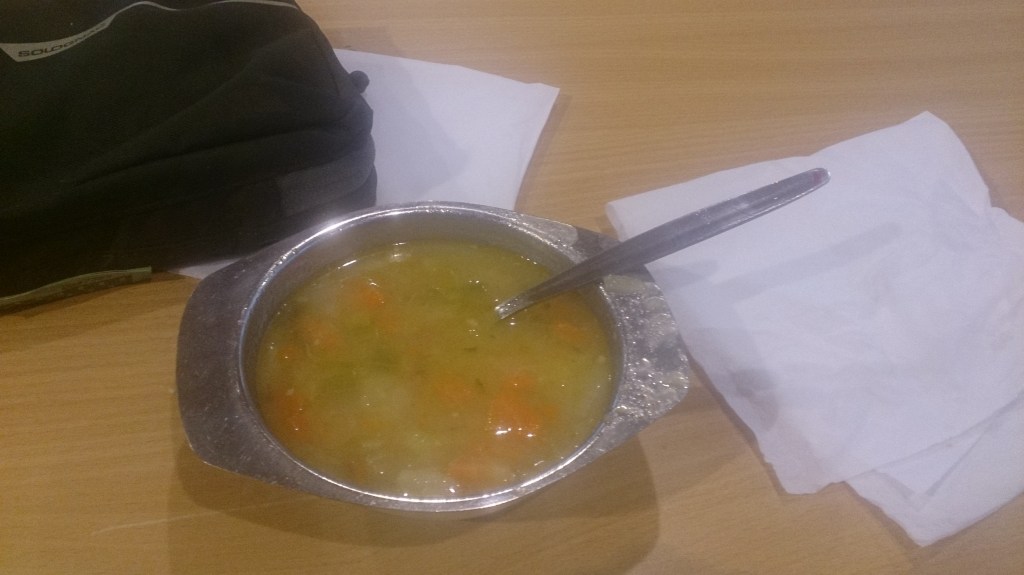 La seconde, c’est de m’offrir, une fois n’est pas coutume, une excellente soupe ardennaise avec des pommes de terre, des carottes, des navets, et des morceaux de saucisses ! Un régal !