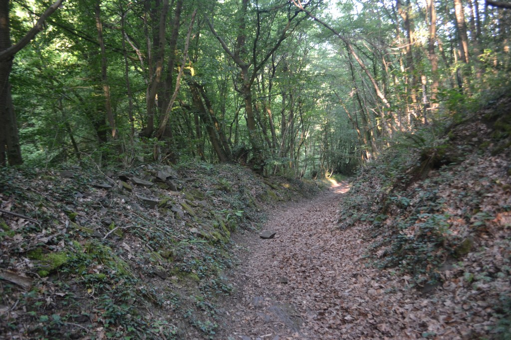 Il nous emmène sur les hauteurs, le long d’un beau petit sentier qui entoure la noble propriété, avant d’amorcer un retour dans la vallée de l’Ourthe à proximité du tunnel ferroviaire.