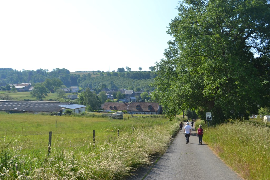 A hauteur de l’Ile de la Venne, nous remontons vers le plateau en direction de Flagothier, mais non sans avoir auparavant effectué une boucle spéciale 20 km qui me sépare du gros de la troupe. Il fait chaud, mais heureusement, quelques tronçons boisés sont des intermèdes rafraîchissants.