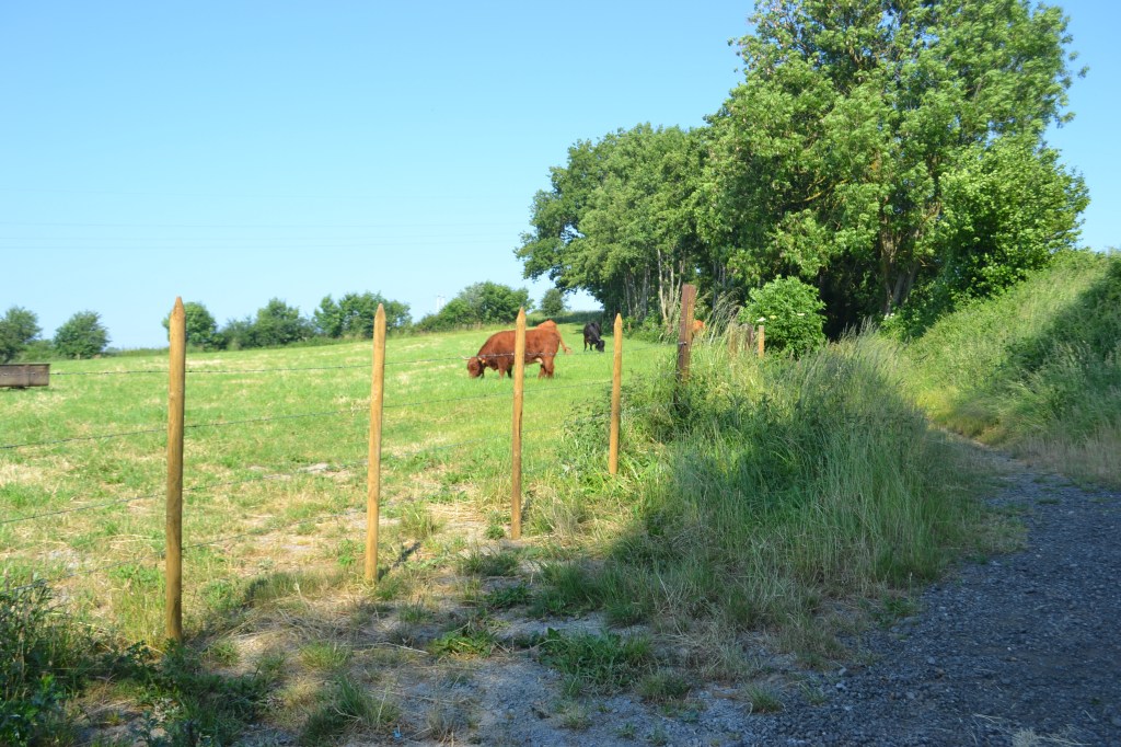 Allez, hauts les cœurs, je reviens sur mes pas pour prendre une petite photo explicative du « lieu du combat ». Cela n’a apparemment pas traumatisé les vaches ! Tant mieux ! Je peux reprendre le bon chemin toujours vers l’est.