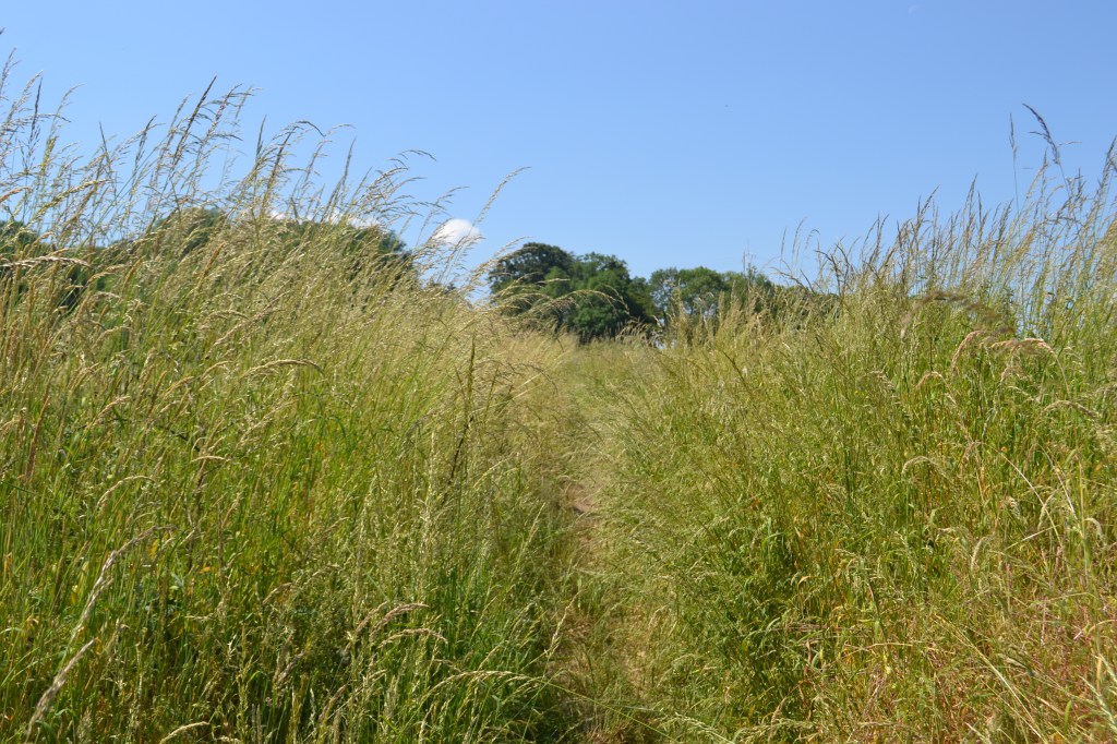 Voyant le chemin barré par une clôture, l’homme pressé a préféré entrer dans la prairie pour continuer son chemin.
