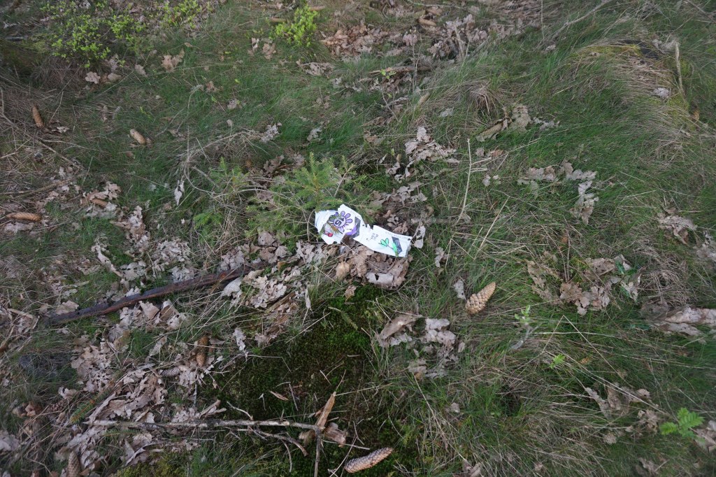 Il a été arraché et jeté dans les taillis ! Je le retrouve et le remets bien en vue le long du chemin, mais j’avoue que des imbécilités pareilles, cela me gonfle à un point que ces simili- « sportifs » ne peuvent même pas imaginer !!!