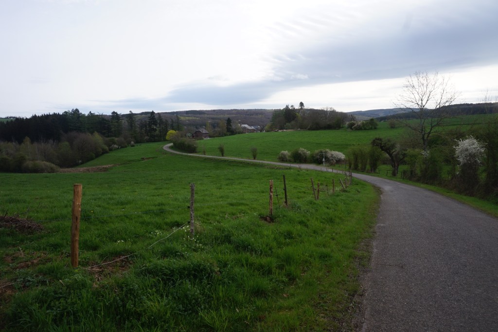 Je suis donc à Amonines, petit village de la commune d’Erezée, sur la rive gauche de l’Aisne, elle-même longée par l’ancienne voie de chemins de fer qui est encore utilisée aujourd’hui comme attraction touristique.