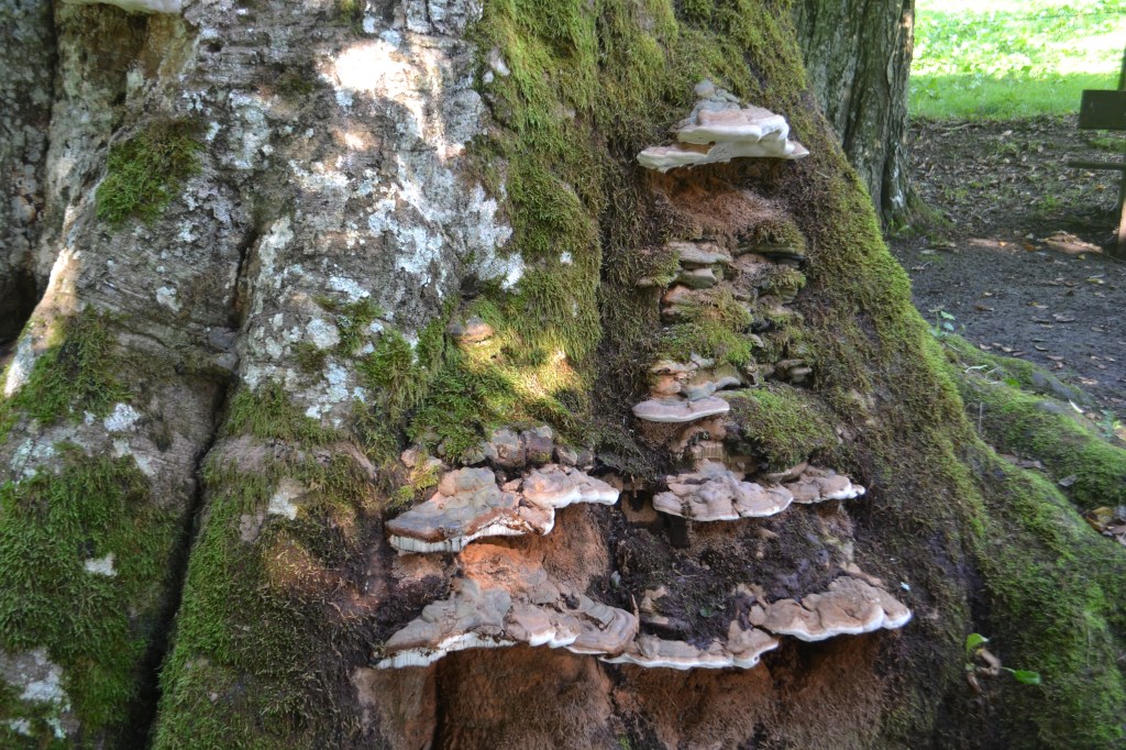 Ce vénérable hêtre aurait donc eu lui aussi 500 ans cette année. La dernière fois que je suis passé dans le coin en 2019, il avait encore toute sa tête ! La foudre a probablement été la cause de cet « accident mortel » et les champignons se chargent aujourd’hui de l’achever.