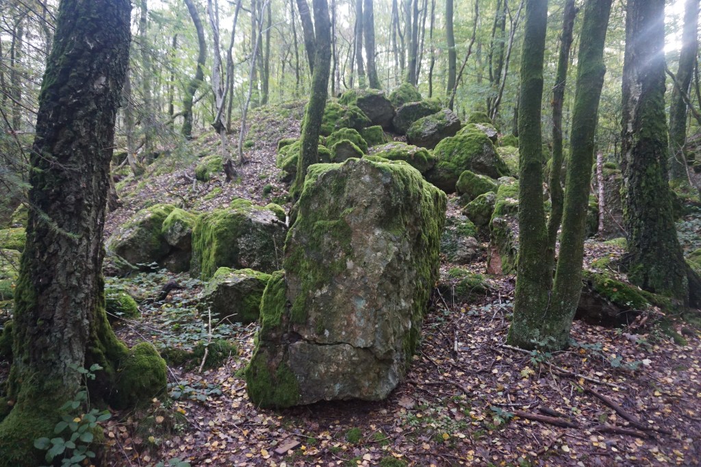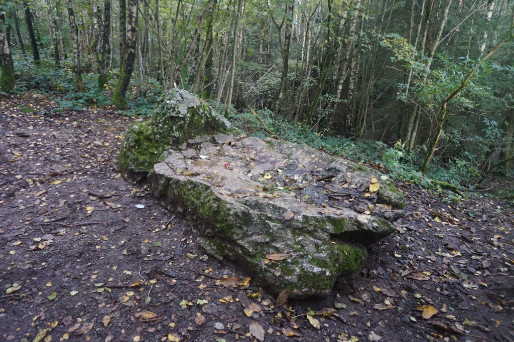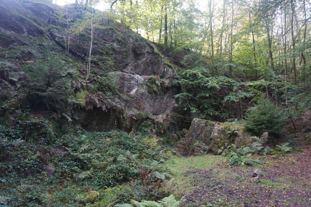 De là, je continue en direction des bois et d’un endroit où commence souvent l’histoire de ces pierres : la carrière de poudingue dont elles ont été extraites.