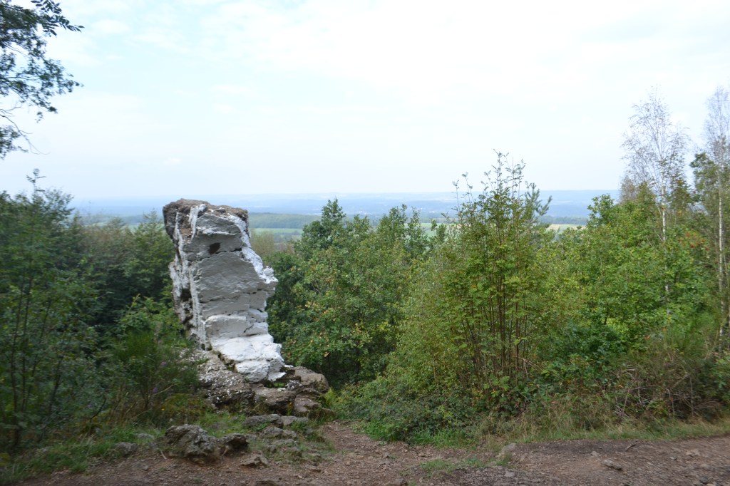 Alors que je photographie un tas de pierres près d’un panneau explicatif, un jeune chercheur de champignons de la région, qui me reconnaît pour m’avoir déjà vu sur des marches Adeps (comme quoi cela peut s’avérer bien utile d’avoir une belle moustache blanche taillée à la gauloise 😉) me signale que la carrière se trouve à l’arrière de ce tas de roches.