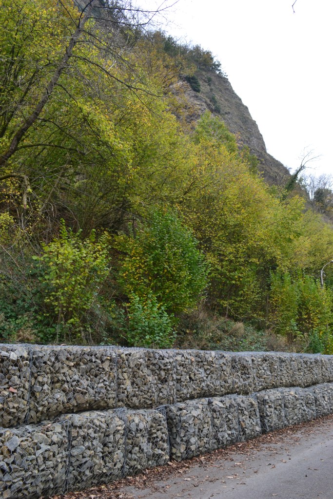 Nous longeons l’Amblève sur une petite route protégée par une barrière anti-éboulements car même si la carrière a cessé ses activités, les chutes de pierres sont encore nombreuses de nos jours.