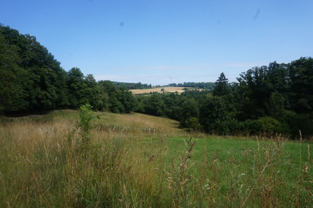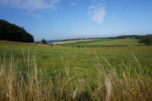 Nous nous dirigeons vers le château de Ramezée en longeant la magnifique allée sur la crête qui sépare le Condroz de la Famenne.