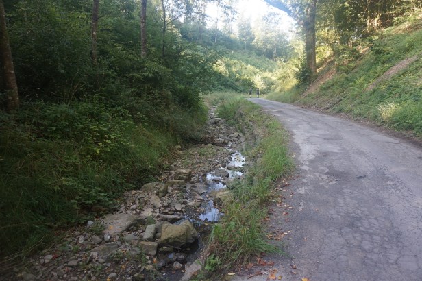 On entre rapidement dans le vif du sujet par un bois à l’est de la ville et les premiers des 543 mètres de dénivelés prévus au cours cette matinée.