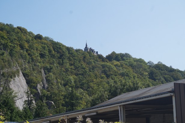 De là, j’aperçois l’Abbaye Notre-Dame de Brialmont sur la crête et d’où la vue sur la vallée doit être magnifique ! C’est là que nous allons.