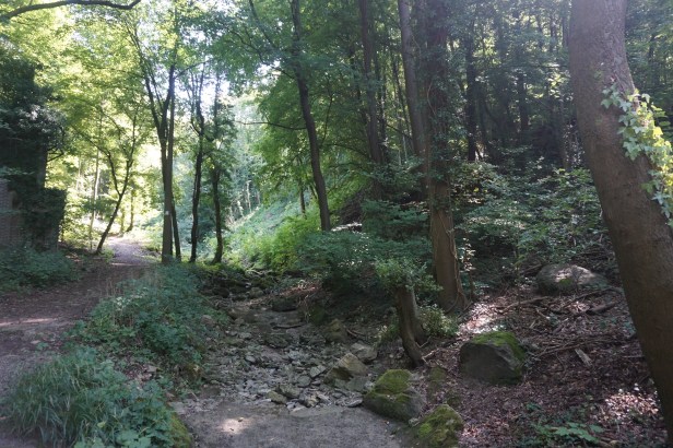 Traversée du Bois des Manants pour redescendre vers le Ri de Gobri légèrement à sec que nous longeons vers l’aval pour arriver à Méry ( ♪♪ joli village aux eaux bleu-eu-es ♪) !