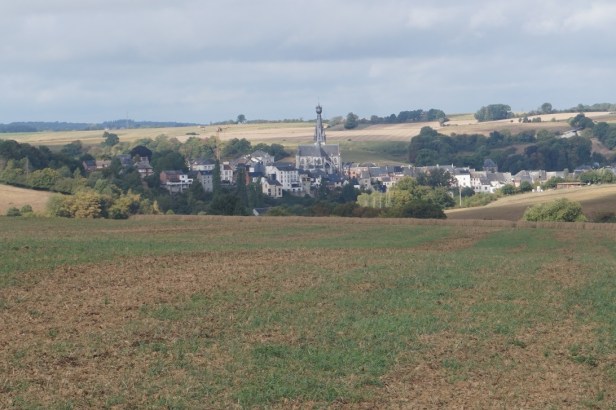 Au détour d’un chemin, voici Walcourt, facilement reconnaissable au clocher bulbeux de sa basilique.