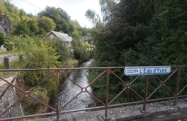 Vogenée , Fairoul, et entre les deux, les Sept Ponts, ce magnifique ouvrage des chemins de fer sur la petite vallée de l’Eau d’Yves. Comprenez « l’eau qui vient du village de Yves » et qui se trouve quelques kilomètres un peu plus à l’est.