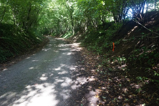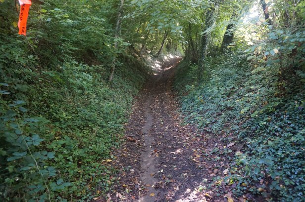 C’est vraiment par hasard que je retombe sur le fléchage à la sortie du patelin.