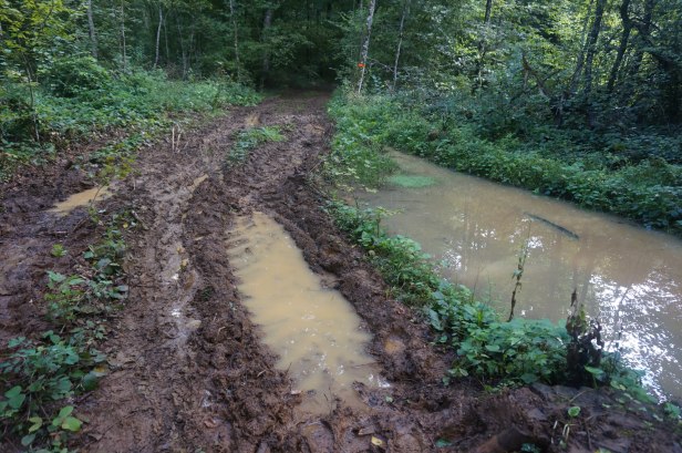 Dans le Trou du Beau Bois, pour bien rôder mes bottines, je leur paie une petite cure de fangothérapie.