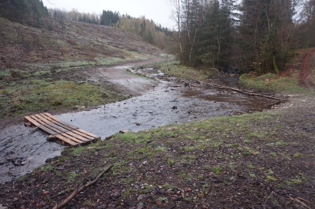Excellente idée la passerelle improvisée sur le Rau de la Fagne de la Goutte avant d’entamer la grimpette sur la gauche !