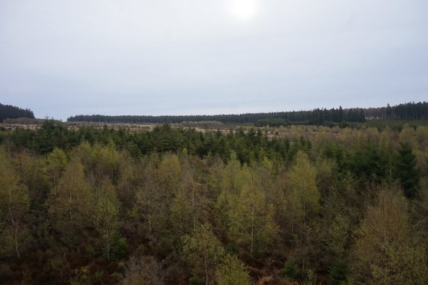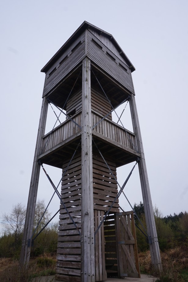 Nous arrivons en effet à la tour d’observation de la fagne d’Odeigne qui nous offre un magnifique panorama sur la Fagne du Pouhon d’un côté et les bois d’Odeigne de l’autre.